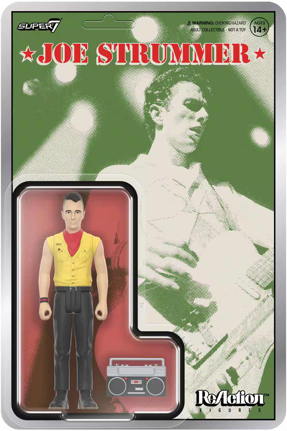 The latest 3.75” scale, articulated Joe Strummer ReAction Figure is inspired by his style in the early ‘80s and comes with a boombox accessory.