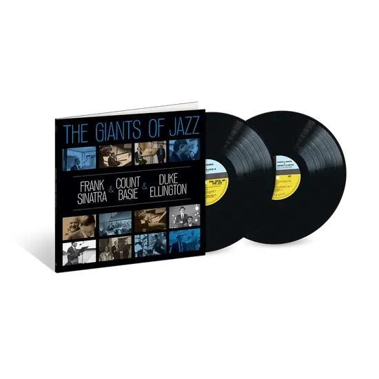 Frank Sinatra/Count Basie/Duke Ellington - "The Giants of Jazz". Double vinyl LP pressing. A 'two-for' release of Frank Sinatra's two Reprise albums, featuring Frank Sinatra fronting the Count Basie band, the album 'It Might As Well Be Swing,' and the Duke Ellington Orchestra on their collaborative LP, 'Francis A. & Edward K.' Includes rare photos along with recreations of the original artwork. 2 LP set on standard black vinyl.